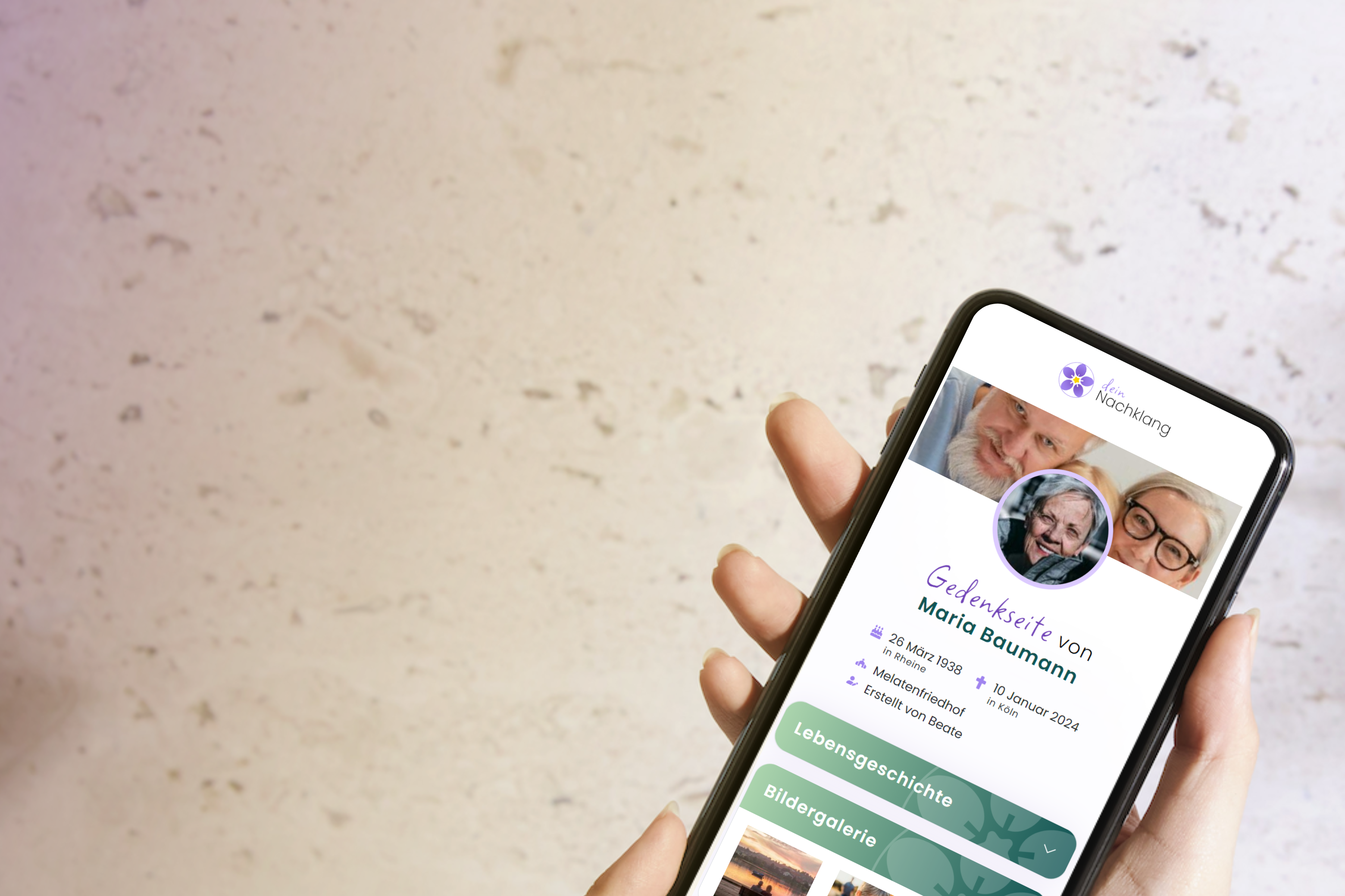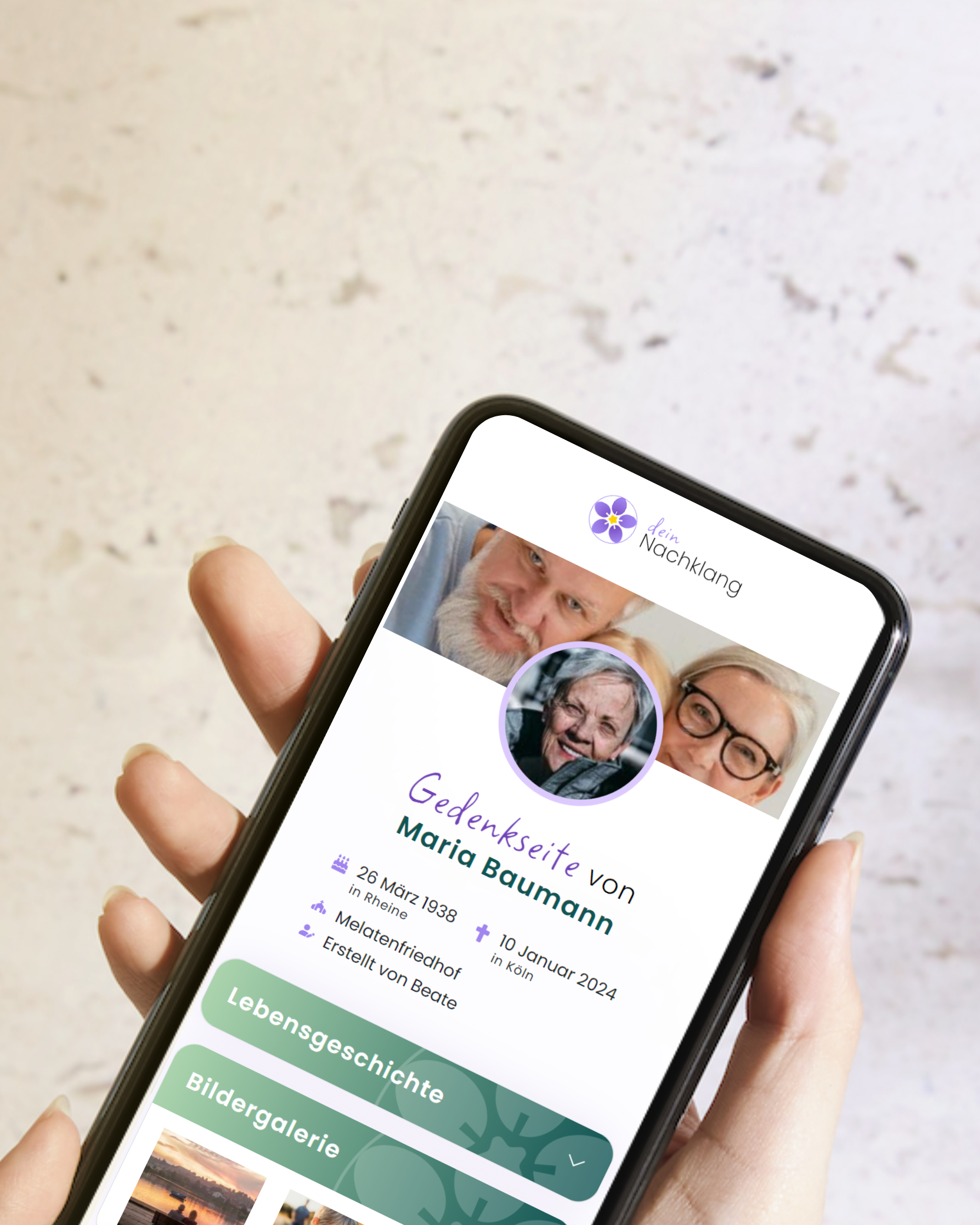 Mit einem Nachklang-Medaillon schaffst Du einen Raum für diese Erinnerungen. Erstelle eine Gedenkseite mit Bildern, Videos und Geschichten. Jeder QR-Code ist genauso einzigartig wie der Mensch, an den er erinnert.